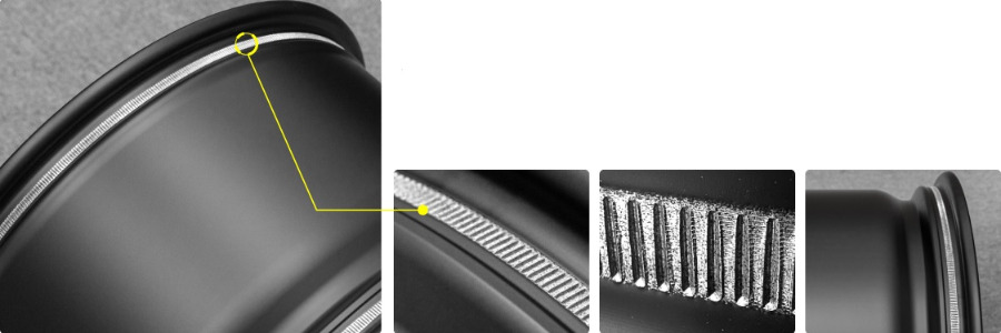 Pro sportovní nebo závodní využití je možné všechna kovaná kola BC Forged nechat vybavit drážkováním styčné plochy s pneumatikou, které zamezuje pohyb pneumatiky na kole při prudké akceleraci nebo brždění.